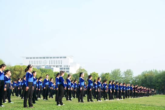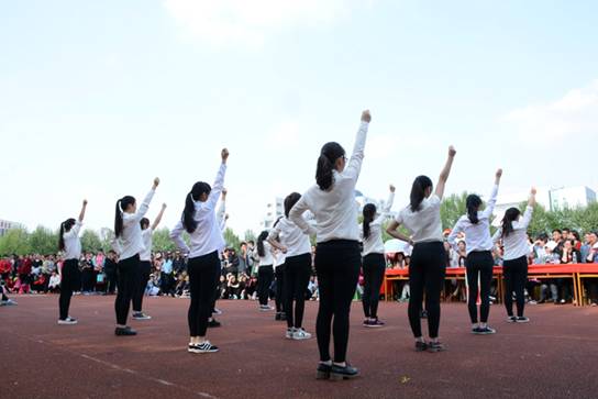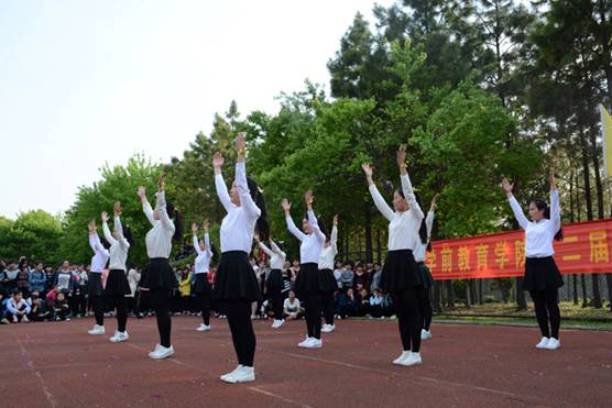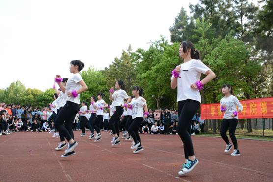在韵律操比赛中,伴随着动感十足的乐曲声,学院各班参赛方队的学生们和着音乐节拍,快乐地舞动起来,精神饱满,让整个赛场都充满了活力。比赛结束后,学院组织学前教育专业的学生600余人还集体表演了《幼儿广播体操》。