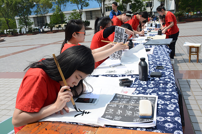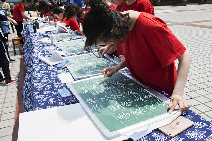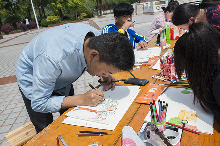 4月13日,教育学院在国旗广场举行小学教育专业学生技能展示,学生们现场展示毛笔、钢笔、粉笔书法和绘画,引来众多学生观看,为期10天的学生专业技能比赛完美收官。