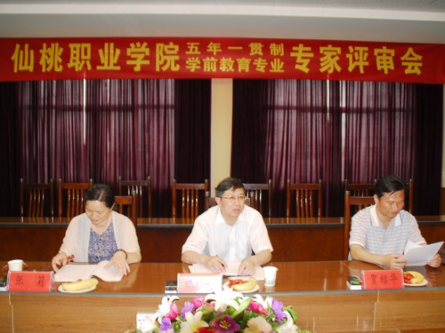 6月18日,省教育厅委派学前教育专家陈俊、贺绍华、张丽一行来我院评审五年一贯制学前教育专业。学院领导袁全汉、李立勇、罗功宇、徐国洪、肖庆圣,校企合作单位市实验幼儿园园长王隽陪同。