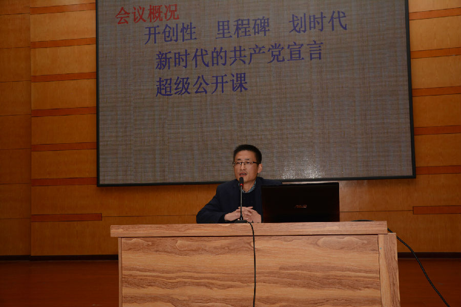 宣讲会在合唱《走向复兴》中拉开序幕。学院党委委员陈伟从党的十九大的主题和主要成果、习近平新时代中国特色社会主义思想、过去5年的历史性成就和历史性变革、中国特色社会主义进入新时代、我国社会主要矛盾的变化、我国经济社会发展重大战略部署、坚定不移推进全面从严治党等方面对党的十九大精神进行了深入的讲解。