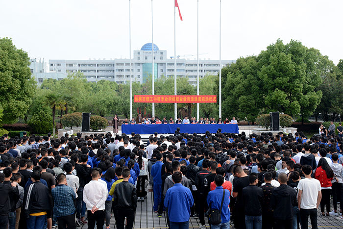 启动仪式上,市人社局副局长康中洲、市教育局副局长舒方旭分别致辞,副院长罗功宇宣布职业教育活动周启动。