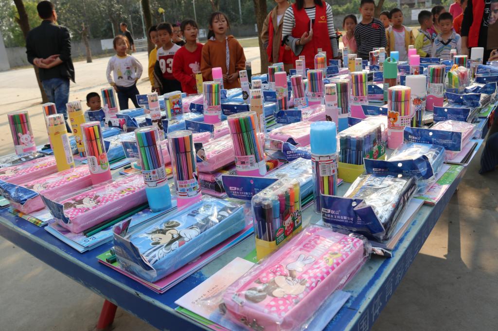 同学们将募捐来的图书、学习用品、玩具等送给小朋友。为小朋友们上课、做游戏,教孩子们唱歌、跳舞、画画,陪小朋友们度过了一个快乐的下午。