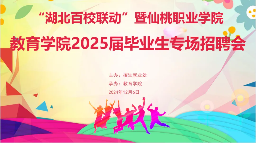 为深入贯彻党中央、国务院的决策部署,积极响应就业优先战略,2024年12月6日,“湖北百校联动”暨仙桃职业学院教育学院2025届毕业生专场招聘会在我院举行。此次招聘会邀请了50余家用人单位参会,涉及学前教育、幼儿托育、早期教育、文化创意,小学教育等多个领域,为广大学子提供了近500个就业岗位。